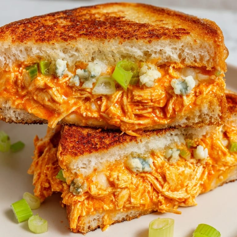 Save to Pinterest My friend challenged me to make a grilled cheese that could stand up to wings night, and honestly, I almost laughed until I thought about the flavor combination sitting right in front of me—spicy buffalo sauce and tangy blue cheese melting into buttery bread. That first bite changed everything. It turns out the best sandwiches don't come from complicated recipes; they come from taking familiar flavors and letting them talk to each other properly.