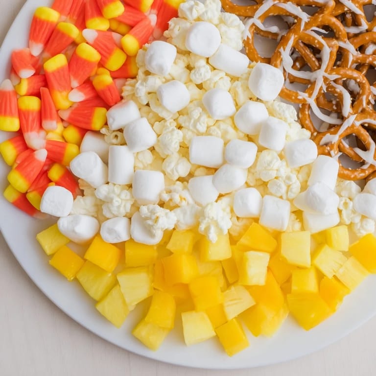 - Candy & Sweets: 1 cup candy corn, 1 cup white chocolate-covered pretzels, 1 cup mini marshmallows, 1 cup orange gummy candies (e.g., orange slices, peach rings), 1 cup yellow jelly beans or lemon drops