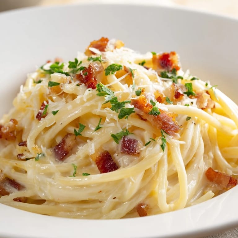 Save to Pinterest There's something almost magical about the moment bacon fat hits a hot skillet—that sizzle and smell that instantly fills the kitchen and makes everyone pause. I discovered this creamy garlic bacon pasta on a weeknight when I had three hungry people at my table and about thirty minutes to work with something genuinely satisfying. It's become the dish I reach for when I want comfort that doesn't demand hours of fussing, just honest ingredients and a little butter and cream doing their quiet work. The kind of meal that feels indulgent but comes together faster than you'd think.