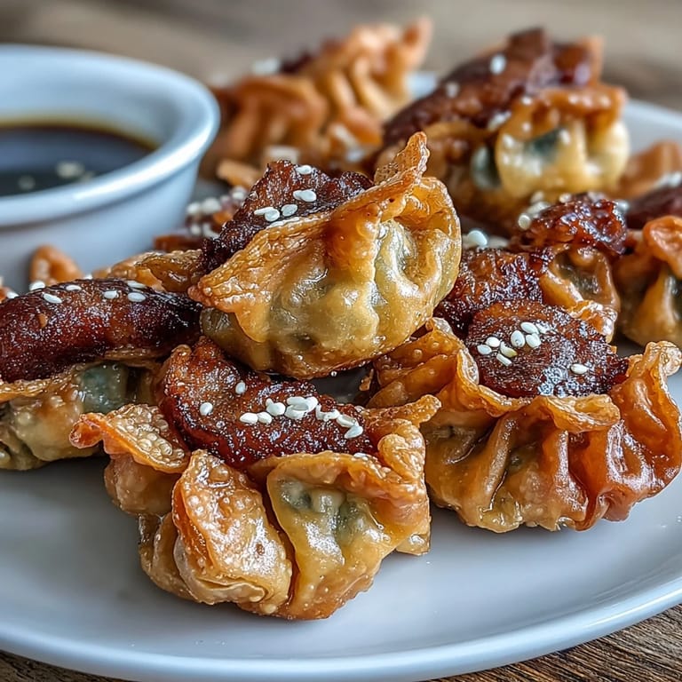 Save to Pinterest My neighbor stopped by one evening with a craving for dumplings, and I realized my freezer held nothing but sad leftovers and ice. That's when I discovered the magic of the air fryer—those golden, crispy parcels emerged in under fifteen minutes, shattering like autumn leaves when you bit into them. The kitchen filled with this toasted, savory aroma that made her eyes light up before she'd even tasted one. Sometimes the best meals come from working with what you have and a willingness to experiment.