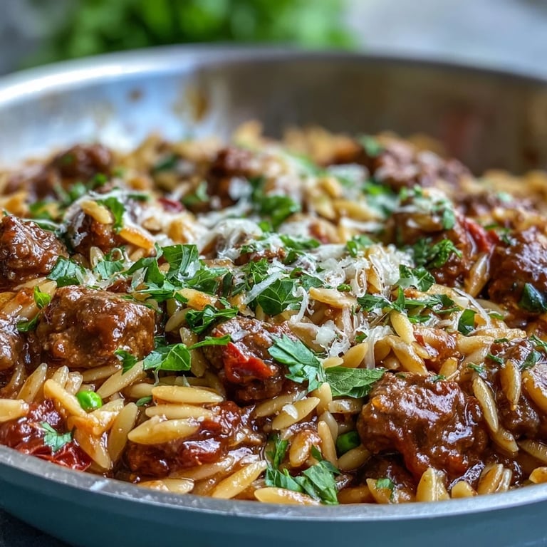 Save to Pinterest The smell of onions hitting hot olive oil always pulls me back to those frantic Tuesday evenings when I needed dinner on the table in under an hour. I grabbed whatever was in the pantry—ground beef, a box of orzo I'd forgotten about, some canned tomatoes—and tossed it all into one skillet. The result was this bubbling, savory mess that my family devoured without a single complaint. Now it's my go-to when I want comfort without the fuss.