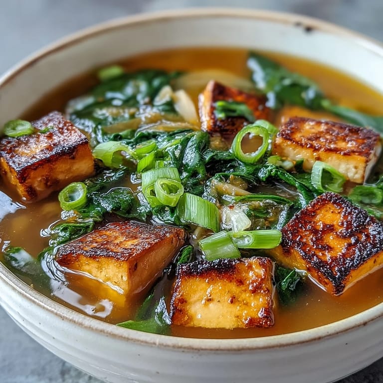 Save to Pinterest Experience the gentle warmth of a traditional Japanese favorite with this Miso Soup with Tofu, Spinach, and Green Onions. This delicate and nourishing soup combines creamy firm tofu, vibrant fresh spinach, and aromatic green onions in a savory, umami-rich miso broth, making it a perfect easy meal or starter.