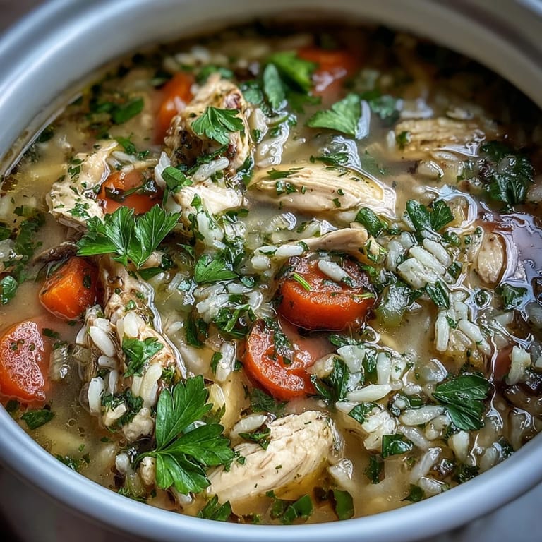 Save to Pinterest There's something about stirring a pot of simmering broth that makes everything slow down. I discovered this soup on a Tuesday afternoon when my fridge held nothing but chicken breasts, carrots, and rice, and I needed something that felt like care in a bowl. What started as making do with what I had became the meal I reach for whenever life feels hectic or someone needs feeding. The simplicity of it surprised me most—no fussy techniques, just one pot and the patience to let flavors marry together.