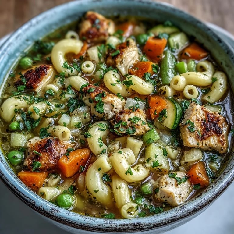 Save to Pinterest There's something about the sound of vegetables hitting hot oil that signals comfort is on the way. My kitchen filled with that exact noise one chilly evening when I needed something warming but didn't want to spend hours cooking. This soup came together almost without thinking—chicken, pasta, vegetables, broth—the kind of dish that feels both simple and generous at once. It's the meal I make when I want my family gathered around the table without stress, and honestly, it never disappoints.