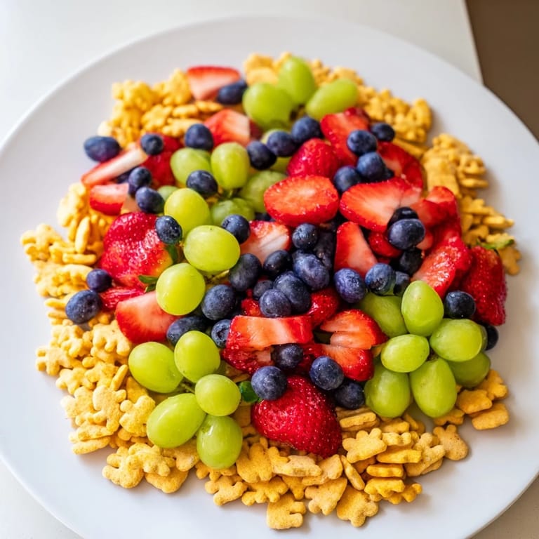 Save to Pinterest A fun, colorful, and crunchy kid-friendly snack pile featuring rainbow Goldfish crackers, fresh fruit, and creamy yogurt dipβperfect for playdates or after-school treats.
