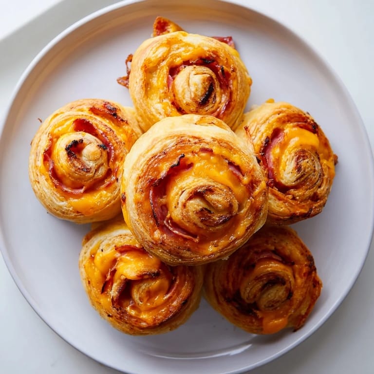 Save to Pinterest Buttery, golden pastry scrolls filled with sharp cheddar and savory salami—perfect for parties or snacking.
