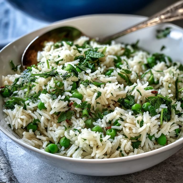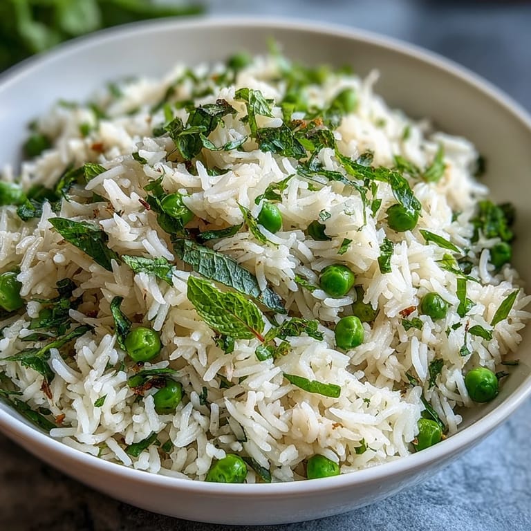 Mint in this dish does something unexpected—it doesn't taste minty in the toothpaste sense, but rather adds a cool, green brightness that makes your mouth wake up and notice the peas and rice all over again. The key is freshness and timing: old mint leaves that have been sitting in your crisper drawer will taste dusty, but leaves that came home from the market yesterday will taste alive. I learned this the hard way when I tried making it with dried mint once and ended up with something that tasted more like tea than spring.