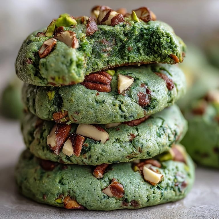 Save to Pinterest My coworker Sarah brought these lime-green cookies to the office last March, and I was immediately suspicious—not because they looked festive, but because she swore they tasted nothing like the artificial pistachio stuff I remembered from childhood. One bite proved her right; the nuttiness was genuine, almost buttery, with just enough sweetness to feel indulgent without being heavy. She casually mentioned the secret was real pistachios blended with spinach, and I spent the next week tracking down her recipe. Now every St. Patrick's Day, I make a double batch because apparently green desserts are the only reason some people actually accept my invitation to the party.