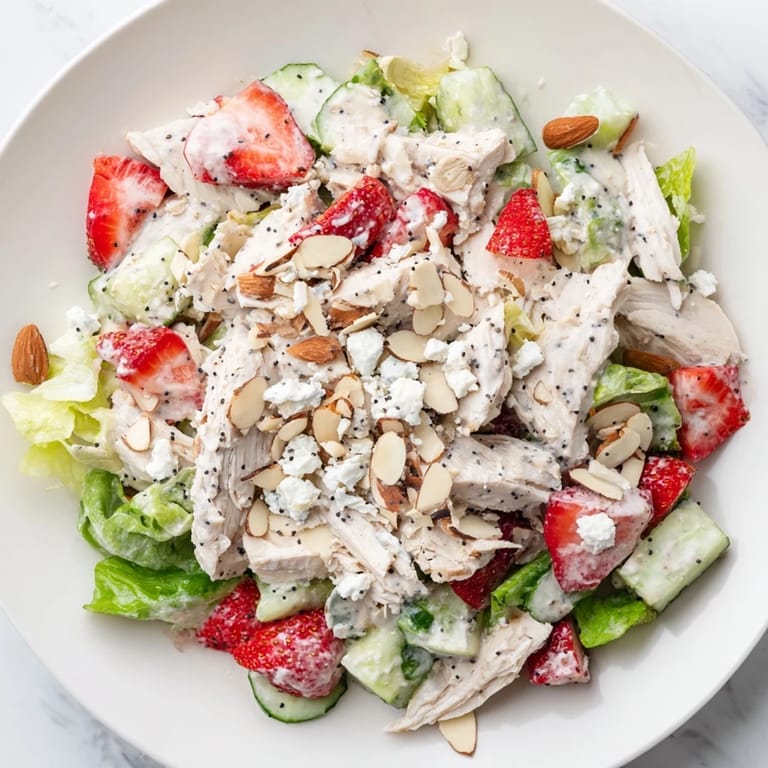 Save to Pinterest The first time I made this salad was during a heat wave when even the thought of turning on the oven felt like a personal offense. My friend had dropped by unexpectedly, and I stood staring at the refrigerator hoping something would assemble itself into lunch. The chicken I'd poached that morning sat next to a carton of strawberries I'd picked up at the farmers market, and suddenly this unlikely combination made perfect sense.